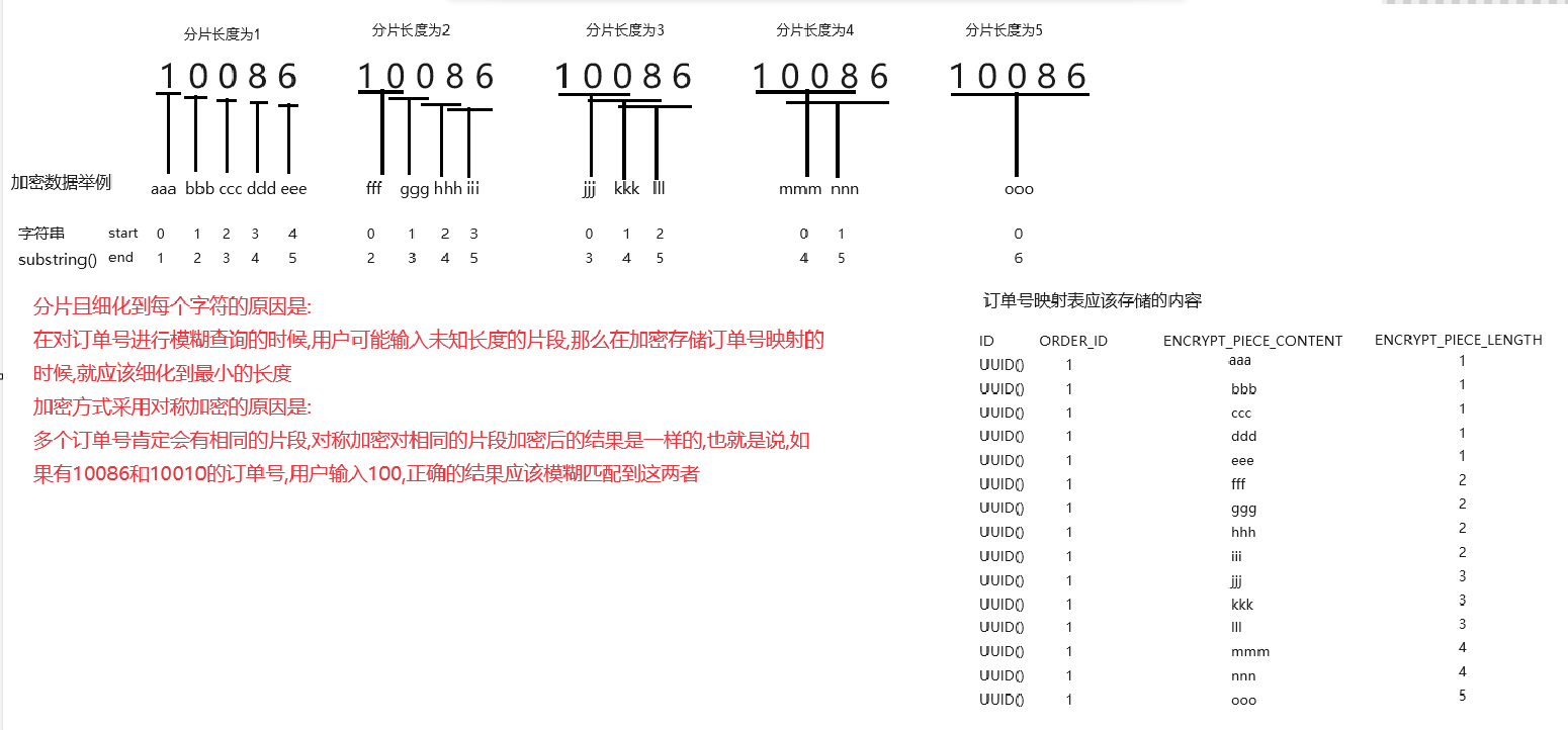 业务场景举例: 订单号在后台生成以后通过非对称加密存储在数据库中,前台通过输入部分字符对订单号进行模糊查询